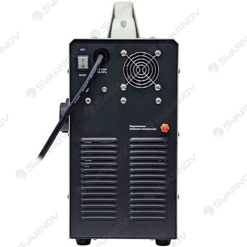 Аппарат выполнен в прочном металлическом корпусе. На лицевой части расположены панель управления, решетка вентиляции, разъем подключения плазмотрона, штекер управления 2pin и ОКС разъем для подключения клеммы заземления. Панель управления состоит из цифрового дисплея, индикаторов питания, перегрева и неисправности, переключателя источника воздуха (встроенный или внешний компрессор) и ручки регулировки тока реза. Воздушные фильтра размещены на правом боку. На тыльной стороне расположены кнопка включения, выход сетевого шнура, решетка вентиляции и штуцер подключения внешнего источника воздуха. Транспортировочная ручка из пластика, находится на крышке.