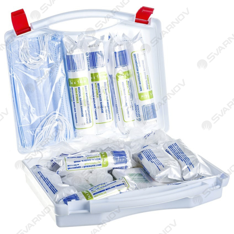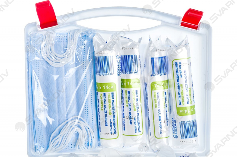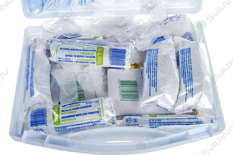 Аптечка первой помощи работникам – незаменимая вещь в любом месте, где работают люди, от офиса до производственного участка. Эта модель укомплектована в соответствии с приказом Минздрава РФ и предназначена для оказания первой помощи работникам. В составе перевязочные материалы, устройство для проведения искусственного дыхания, ножницы, салфетки, маски и перчатки. Дополнять аптечку вы можете по своему усмотрению.