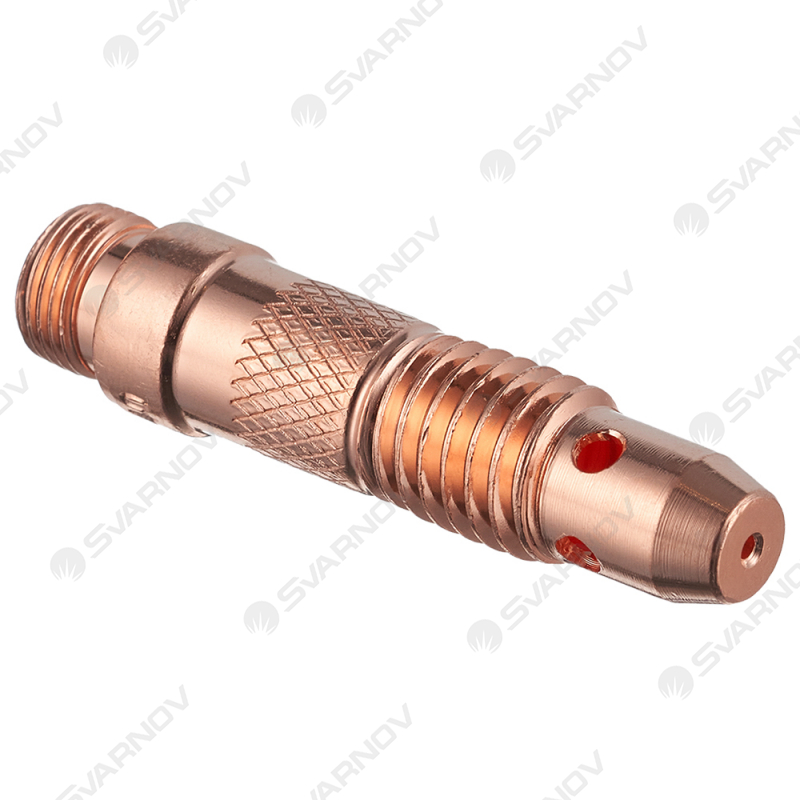 Держатель цанги (TS 17-18-26) 1,0 мм применяется для фиксации и поджатия цанги, а также для установки сопел и подачи и распределения в них защитного газа. Используется для установки стандартных сопел в головке горелок TS 17, TS 18, TS 26, их модификаций и аналогах. Материал— медь.