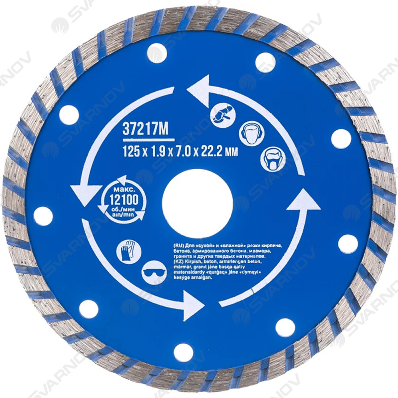 Диск алмазный 125х1,9х7х22,2мм отрезной "турбо" (сухая и влажная резка) предназначен для угловых шлифовальных машин. Применяется для сухой и влажной резки кирпича, бетона, мрамора, гранита и других твердых материалов. Профиль режущей кромки Турбо увеличивает скорость реза и способствует более быстрому удалению отработанного материала, предотвращая перегрев диска. Упаковка – картонный конверт.