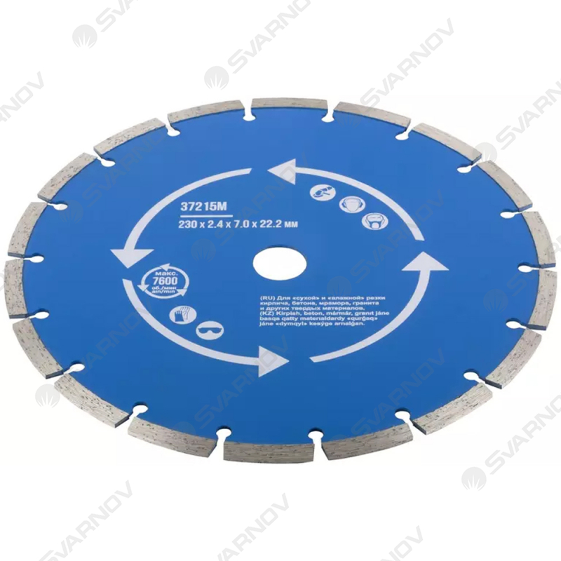 Диск алмазный 230х2,4х7х22,2мм отрезной сегментный (сухая и влажная резка) предназначен для сухой и влажной резки кирпича, бетона, мрамора, гранита и других твердых материалов. Для использования с УШМ. Сегментная режущая кромка высотой 7 мм обеспечивает охлаждение диска в процессе работы, предотвращая его перегрев. Высокая производительность и идеальная балансировка способствуют качественной работе.