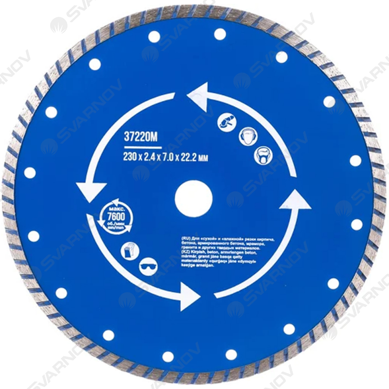 Диск алмазный 230х2,4х7х22,2мм отрезной "турбо" (сухая и влажная резка) предназначен для угловых шлифовальных машин. Применяется для сухой и влажной резки кирпича, бетона, мрамора, гранита и других твердых материалов. Профиль режущей кромки Турбо увеличивает скорость реза и способствует более быстрому удалению отработанного материала, предотвращая перегрев диска. Упаковка – картонный конверт.
