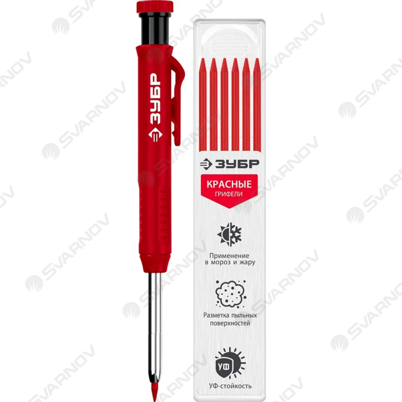 Карандаш автоматический 2,8мм красный, HB, 6 сменных грифелей, АСК ЗУБР используется для нанесения маркировки, надписей, графических и текстовых обозначений, где требуется разборчивая маркировка при проведении ремонтных, строительных и отделочных работ.