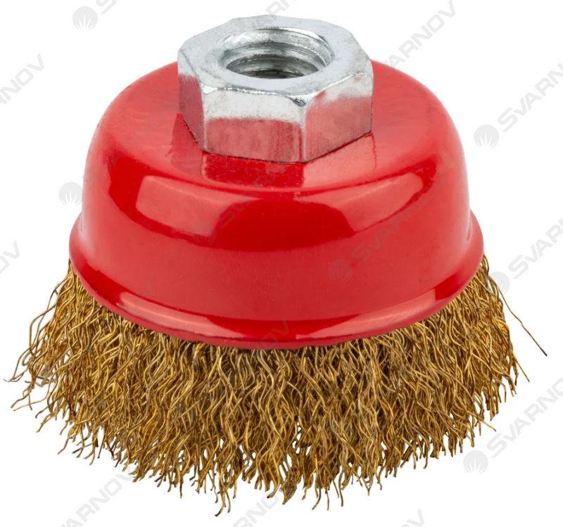 Корщетка (чашка) для УШМ 75/М14 (0,3 мм, волнистая, латунь) Курс предназначена для обработки дерева и металла, снятия краски. Форма ''чашка'' обеспечивает хорошую площадь прилегания к поверхности. Волнистая проволока обеспечивает деликатную зачистку поверхностей. Латунное покрытие проволоки предотвращает коррозию. Гайка с резьбой М14 обеспечивает прочную фиксацию на УШМ.
