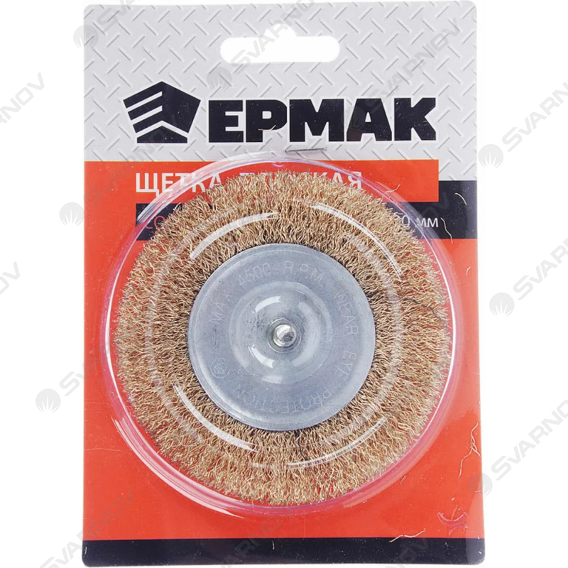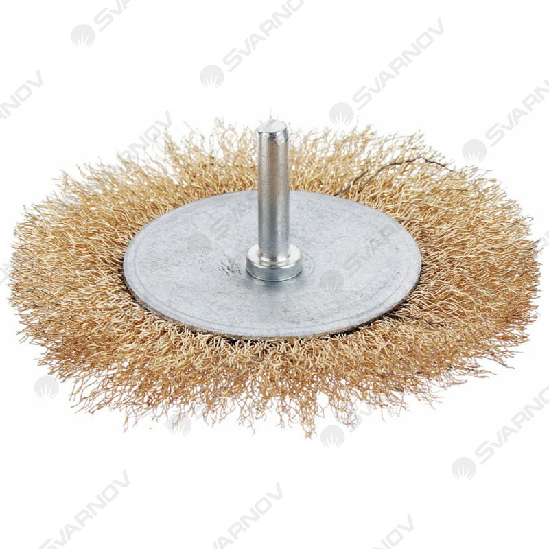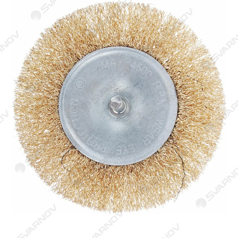 Корщетка (диск) для дрели 100мм со шпилькой, плоская, Ермак — надежный насадочный инструмент для дрели, предназначенный для очистки металлических, деревянных и других твёрдых поверхностей от ржавчины, краски, нагара и прочих загрязнений. Плоская форма рабочей поверхности обеспечивает равномерную обработку, а стальная проволока гарантирует долгий срок службы и высокую износостойкость.