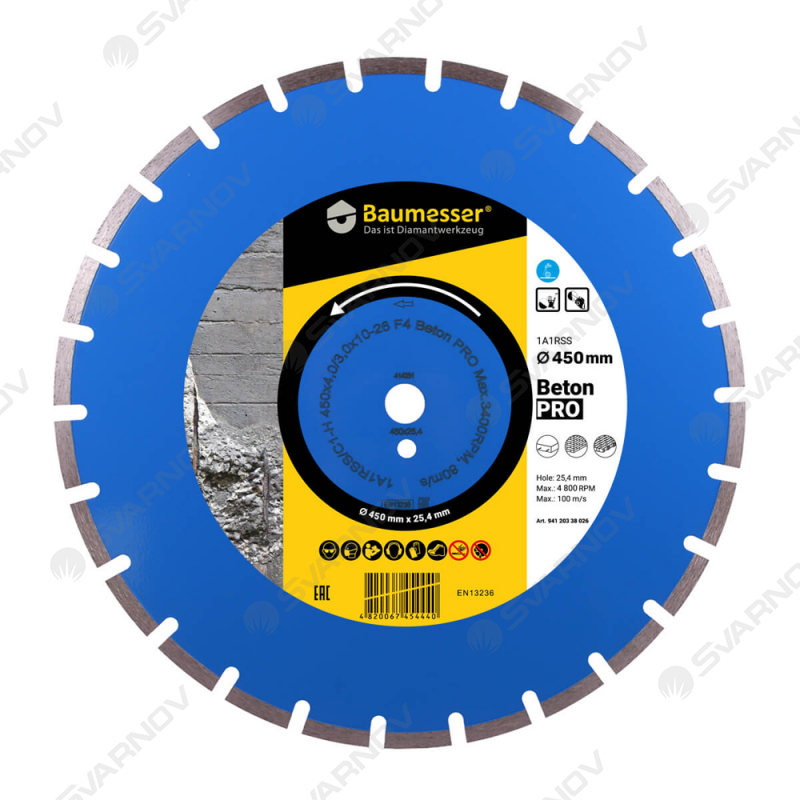 Круг алмазный 450х4,0/3,0х10х25,4 сегментный, по железобетону Buamesser предназначен для резки бетона (бордюрного, слабоармированного), кирпича и тротуарной плитки. Работать с дисками можно с помощью как швонарезчика, так и ручного резчика. Эксплуатируют диски такого диаметра на крупных предприятиях, в маленьких компаниях и иногда в бытовой промышленности. Сегментная оснастка по краям на корпусе делает срезы аккуратными, качественными и тонкими. Чтобы диск не перегревался, можно охлаждать водой, но можно применить и сухую резку, качество среза от этого совсем не поменяется. Это высокопрофессиональный продукт по довольно низкой цене.