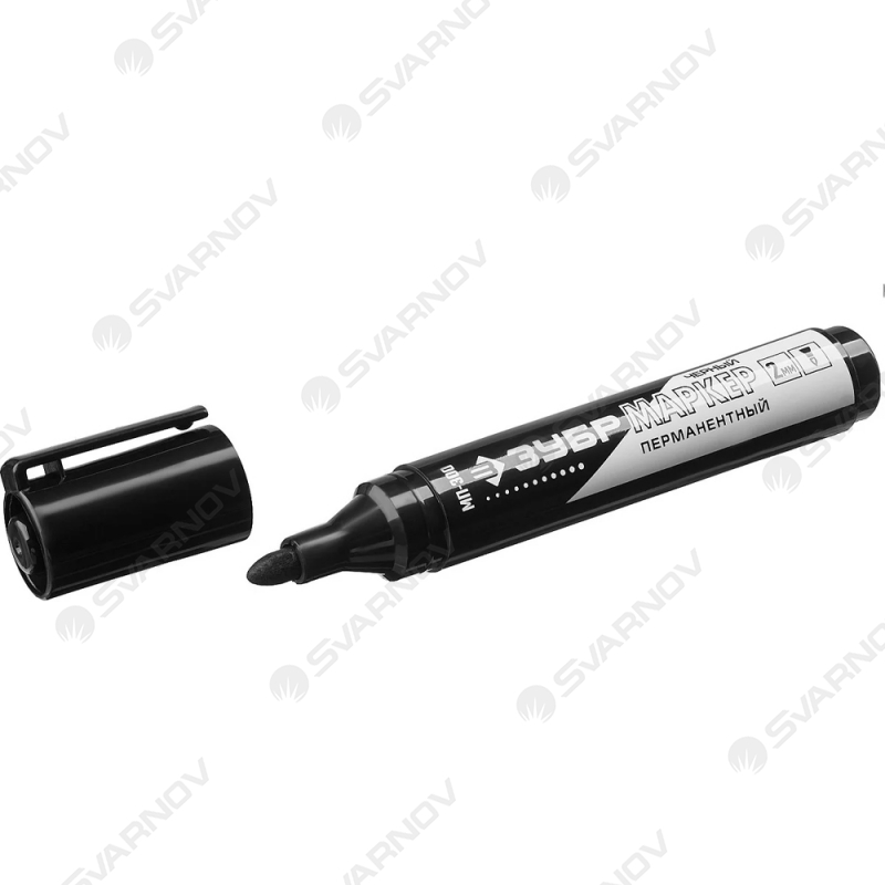 Маркер перманентный 2мм черный МП-300 ЗУБР предназначен для долговременной маркировки различных поверхностей, таких как металл, пластик, стекло, картон и дерево. Он обладает быстросохнущей и устойчивой к влаге краской, которая не выцветает со временем. Маркер обеспечивает четкую и разборчивую надпись благодаря среднему размеру грифеля около 2 мм. Эргономичный корпус с крышкой, оснащенной клипсой, обеспечивает удобство использования и предотвращает высыхание. Данный маркер подходит для строительных, промышленных, бытовых и офисных задач, требующих надежной и стойкой маркировки.