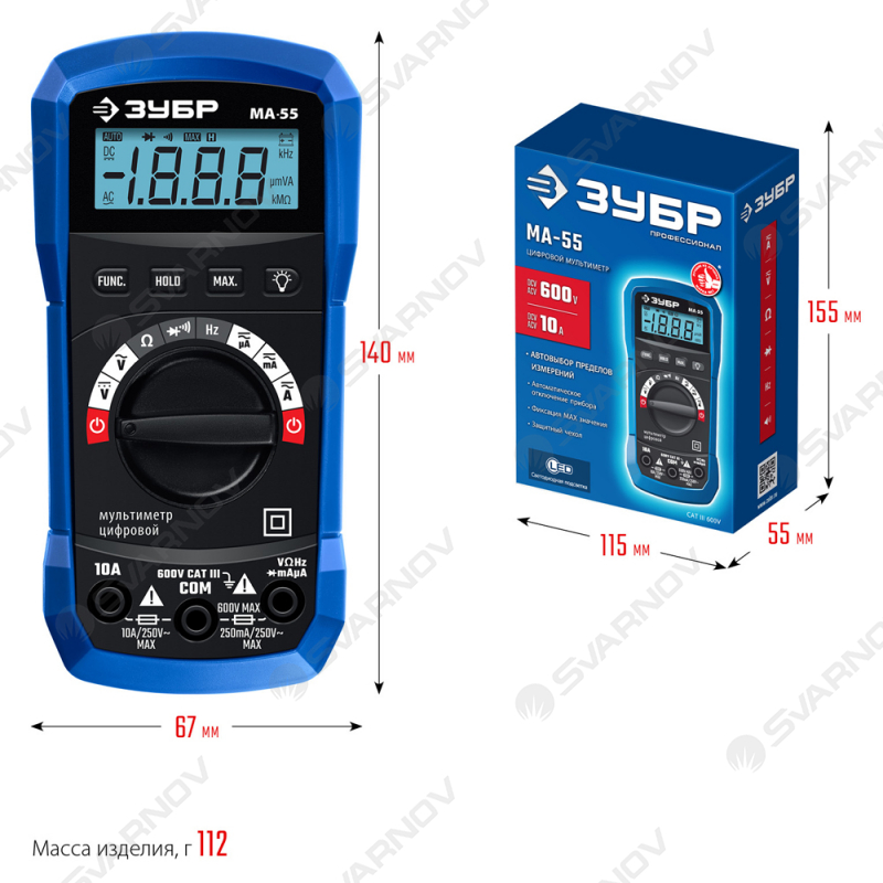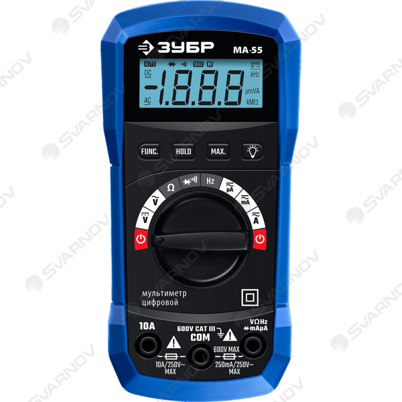 Мультиметр ЗУБР MА-55 цифровой обеспечивает высокую точность измерений. Применение высококачественных материалов формирует длительный срок службы. Прибор имеет функции измерения переменного и постоянного напряжения, сопротивления, проверки целостности цепей со звуковым сигналом, проверки диодов, измерения переменного и постоянного тока, измерение частоты до 20 кГц.