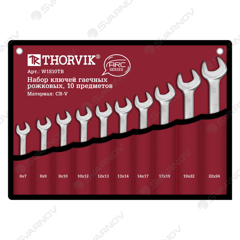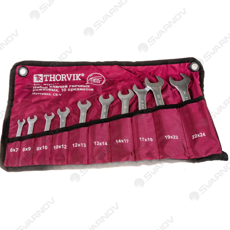 Набор ключей гаечных рожковых серии ARC в сумке, 6-24 мм, 10 предметов Thorvik W1S10TB имеет распространенные размеры головок. Предназначен для демонтажа крепежных элементов.