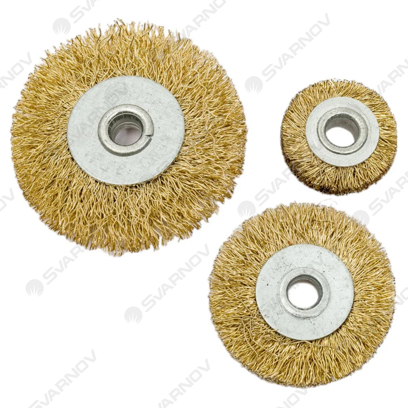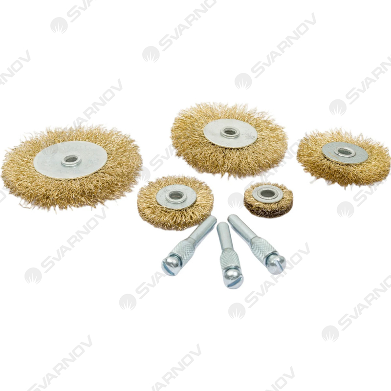 Главная Категории Абразивные материалы Корщетки Набор щеток металл со шпильками 5пр (25мм, 38мм, 50мм, 63мм, 75мм - плоские) Ермак
