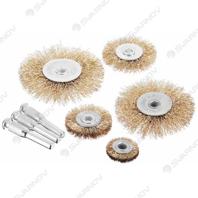 Набор щеток металл со шпильками 5пр (25мм, 38мм, 50мм, 63мм, 75мм - плоские) Ермак