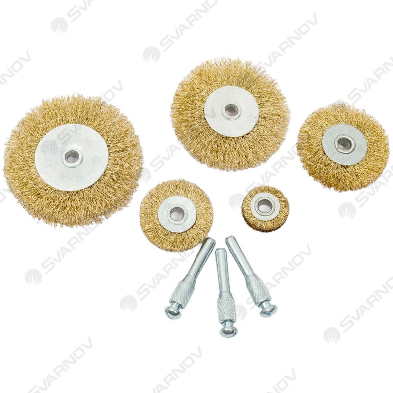 Набор щеток металл со шпильками 6пр (40мм-2шт, 50мм, 65мм, 75мм - плоские, 50мм - чашка) Ермак