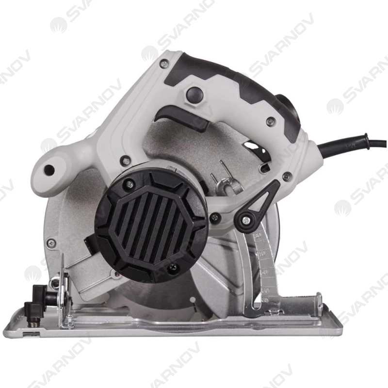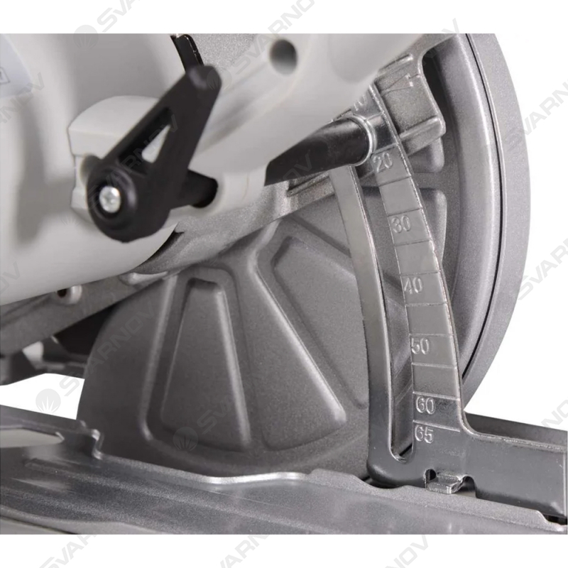 Диск крепится при помощи болта и прижимного фланца непосредственно на валу электродвигателя. Инструмент работает с пильными дисками диаметром до 190 мм. Посадочное отверстие – 20 мм. Этот параметр следует учитывать при дополнительном приобретении оснастки для выполнения раскроя листовых и прочих заготовок. Циркулярная пила обеспечивает максимальный пропил на глубину 68 мм под прямым углом, глубина реза под наклоном в 45° составляет не более 47 мм. Глубину реза можно выбирать с учетом материала и стоящей задачи. Устройство обеспечивает максимальную защиту оператора. Маятниковый кожух прикрывает диск и отодвигается лишь во время работы двигателя. Ручка имеет эргономичную форму и прорезиненное покрытие, исключающее скольжение. В верхней части корпуса имеется отверстие для выхода стружки. К нему можно подсоединить пылесос или тканевый пылесборник. Вес инструмента составляет 4,5 кг, небольшие габариты облегчают эксплуатацию.