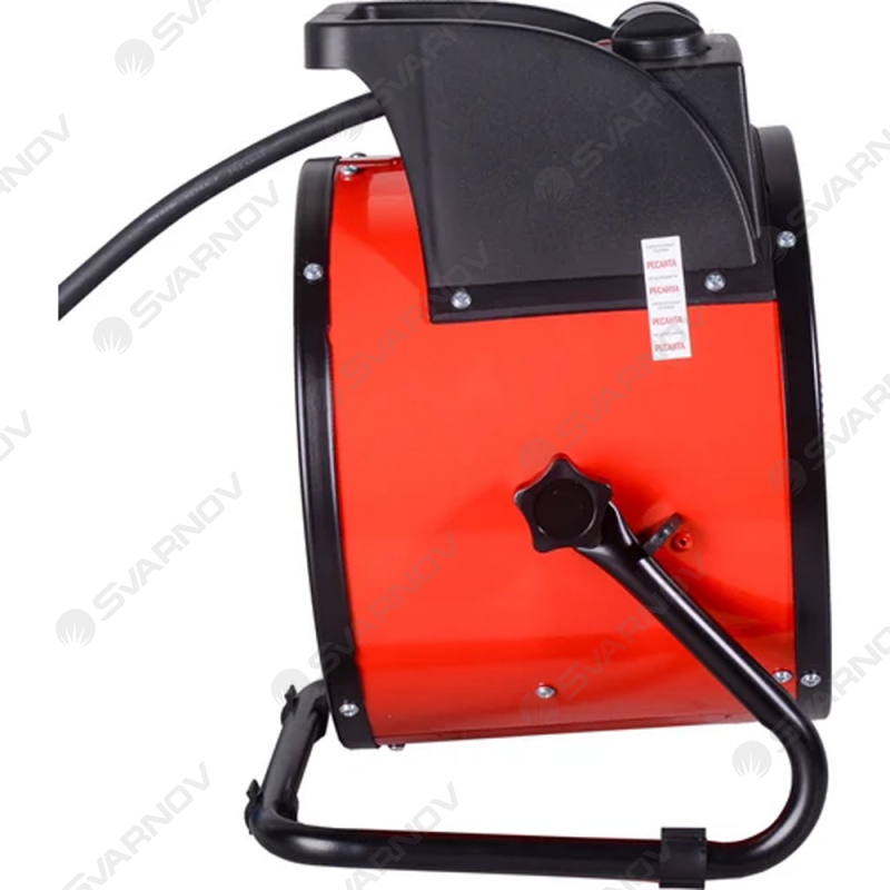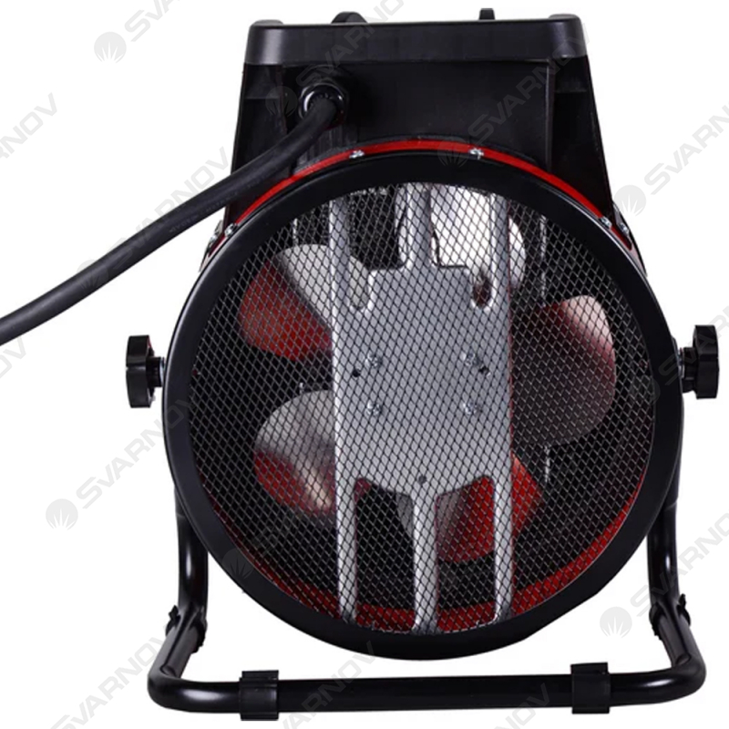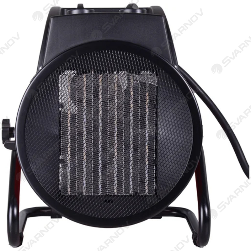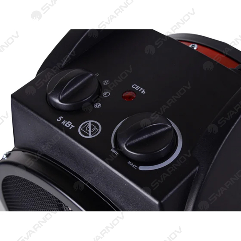Для экономичного расхода электроэнергии предусмотрены 3 режима работы. Для вентиляции помещения достаточно мощности 40 Вт. При нагреве воздуха интенсивность теплового потока регулируется мощностью 3 кВт и 5 кВт. Термостат с механическим управлением позволяет поддерживать выбранную температуру. Угол наклона теплопушки можно изменять. Автоматическая система термозащиты отключит прибор в случае перегрева.