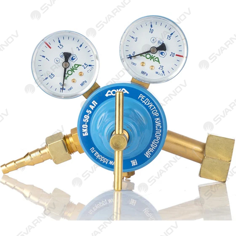 Редуктор кислородный БКО-50-5АI ДОКА предназначен для понижения давления газа, поступающего из баллона, и автоматического поддержания постоянного расхода газа на выходе. Оснастка комплектуется двумя манометрами.