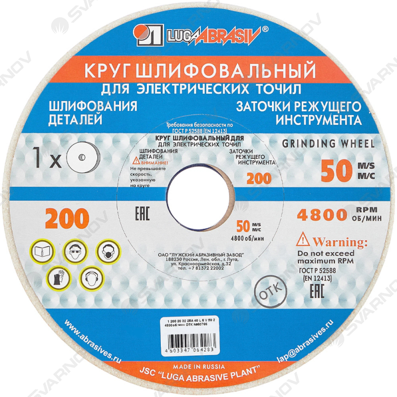 Шлифовальный круг 200х20х32мм 25А 40СМ1 тип 1 Луга Абразив предназначен для абразивной обработки деталей на заточном или шлифовальном станке. Диск изготовлен из белого корунда (25А), подходит для изделий с абразивным покрытием, для изготовления инструмента, который применяется для обработки закаленных твердых сталей, также применяется для пескоструйного шлифования.