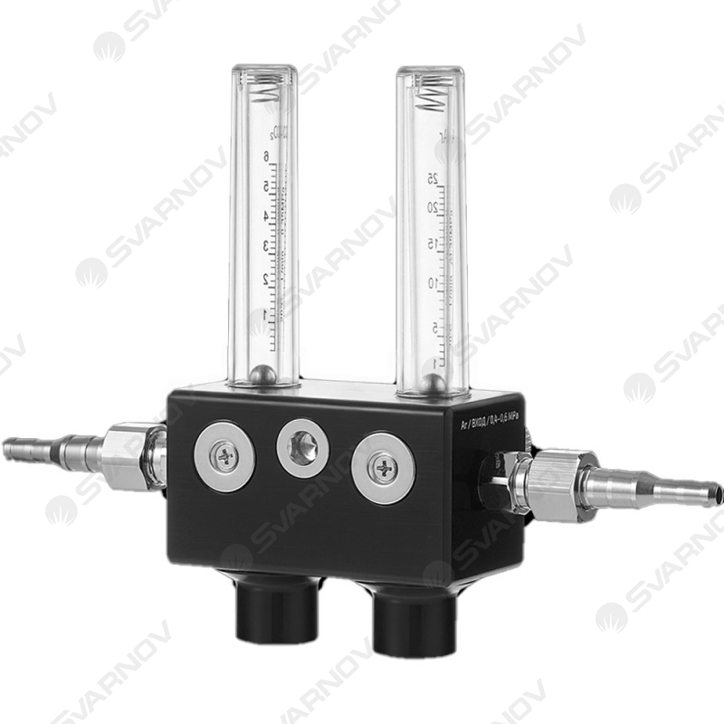 на 2 колбы — классическое решение для получения двухкомпонентной смеси защитного газа в разных пропорциях.
