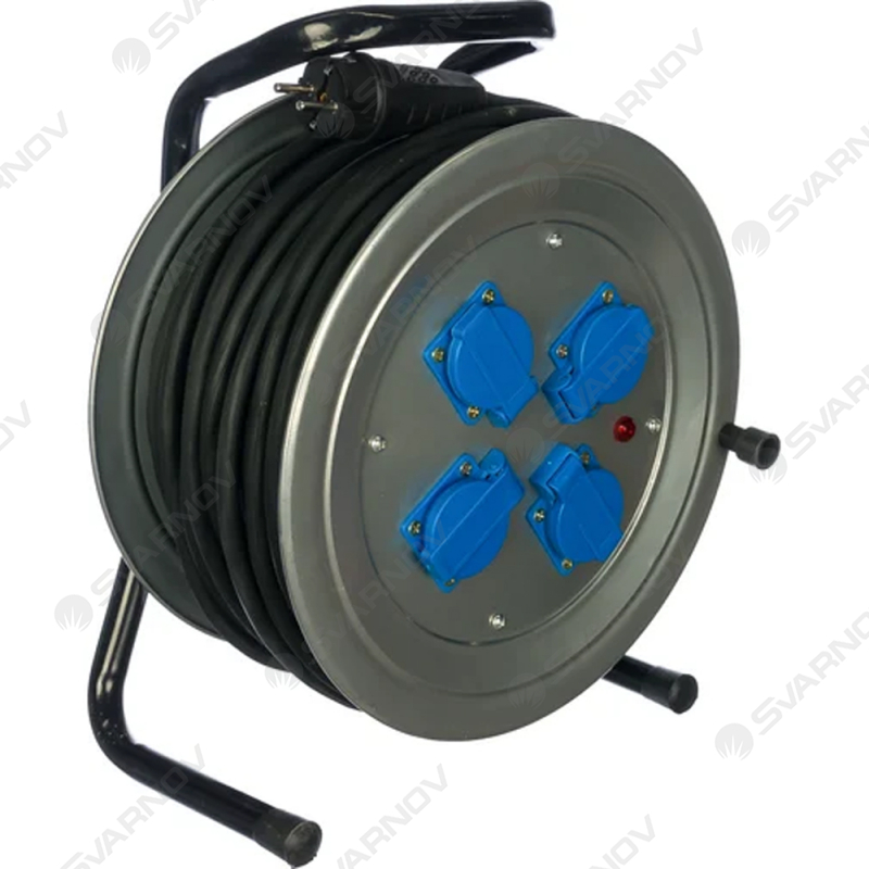 Удлинитель на металлической катушке, КГ 3х2,5, 3,5 кВт, 4 гнезда, 30м Союз предназначен для использования в тяжелых условиях, например на стройках, в производстве и т.д. Прочная металлическая катушка, стальная стойка, покрытая порошковой краской, и защищенные крышками гнезда розеток значительно повышают рабочий ресурс изделия.